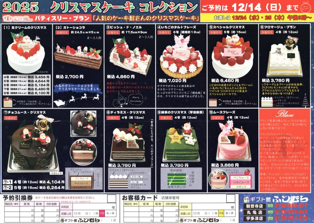 県内のケーキ屋さんのクリスマスケーキもご予約できます。