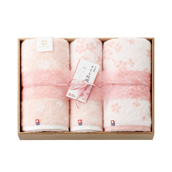 今治謹製 さくら紋織 桜染めバスタオル2P&フェイスタオル2P(木箱入)(SM2210)