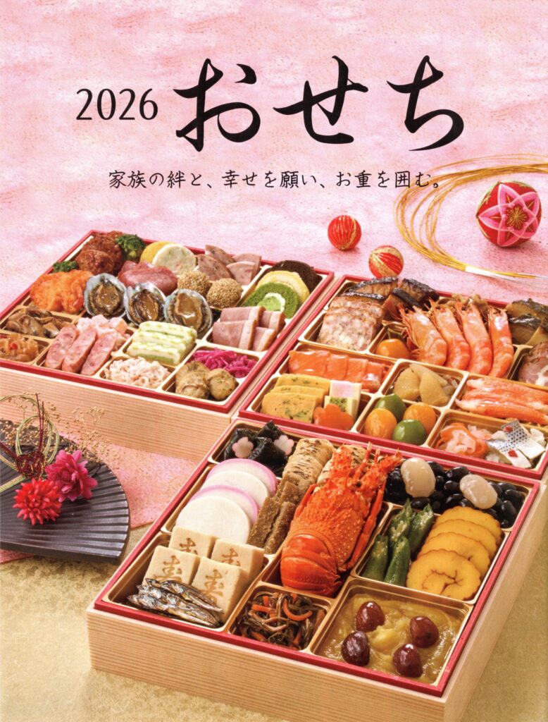 おせち料理が豊富に掲載されたカタログを無料でお届けいたします。下記店舗にご連絡下さい。